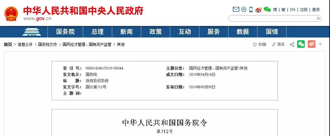 國(guó)務(wù)院總理李克強(qiáng)簽署國(guó)務(wù)院令,公布《政府投資條例》,自2019年7月1日起施行。