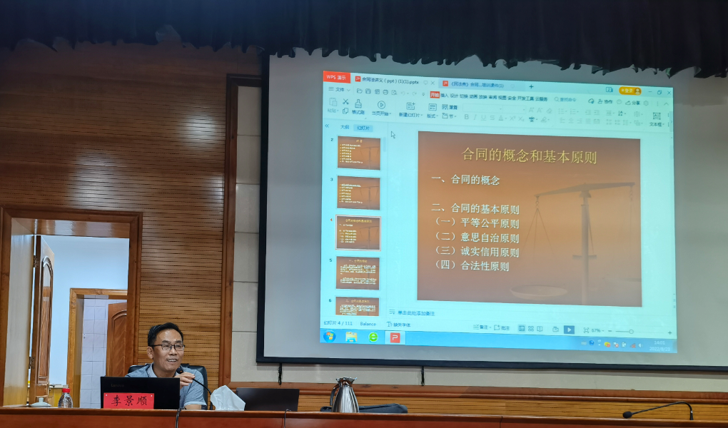 本次培訓(xùn)邀請(qǐng)公司法律顧問李景順律師主講。李律師從“合同基本知識(shí)”、“合同常見的法律風(fēng)險(xiǎn)”、“合同風(fēng)險(xiǎn)防范要點(diǎn)”等方面進(jìn)行講解,并列舉相關(guān)案例進(jìn)行解讀,培訓(xùn)內(nèi)容全面實(shí)用,通俗易懂。培訓(xùn)過程中,參訓(xùn)人員認(rèn)真聽、用心記,不時(shí)與老師交流互動(dòng),探討工作中遇到的合同管理問題。